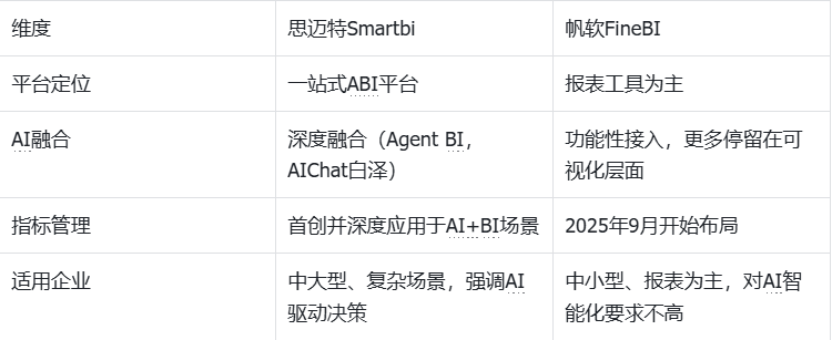 其强大的报表开辟能力深受用户承认。目标办理是BI平台的环节差同化能力,对AI驱动的深度洞察和智能体协做等手艺结构相对不脚。昂扬的兼容成本和办理成本,极大地提拔决策的火速性和精确性。帆软曲到2025年9月才起头结构目标办理,合作力相对较弱。企业往往需要面对多系统、兼容性差、进修成本高、利用取办理成本高以及价钱成本居高不下的问题。,它引入了包罗大模子、RAG加强、多智能体协做和工做流(内置阐发智能体、专家智能体、演讲智能体,初创一坐式ABI平台能力。