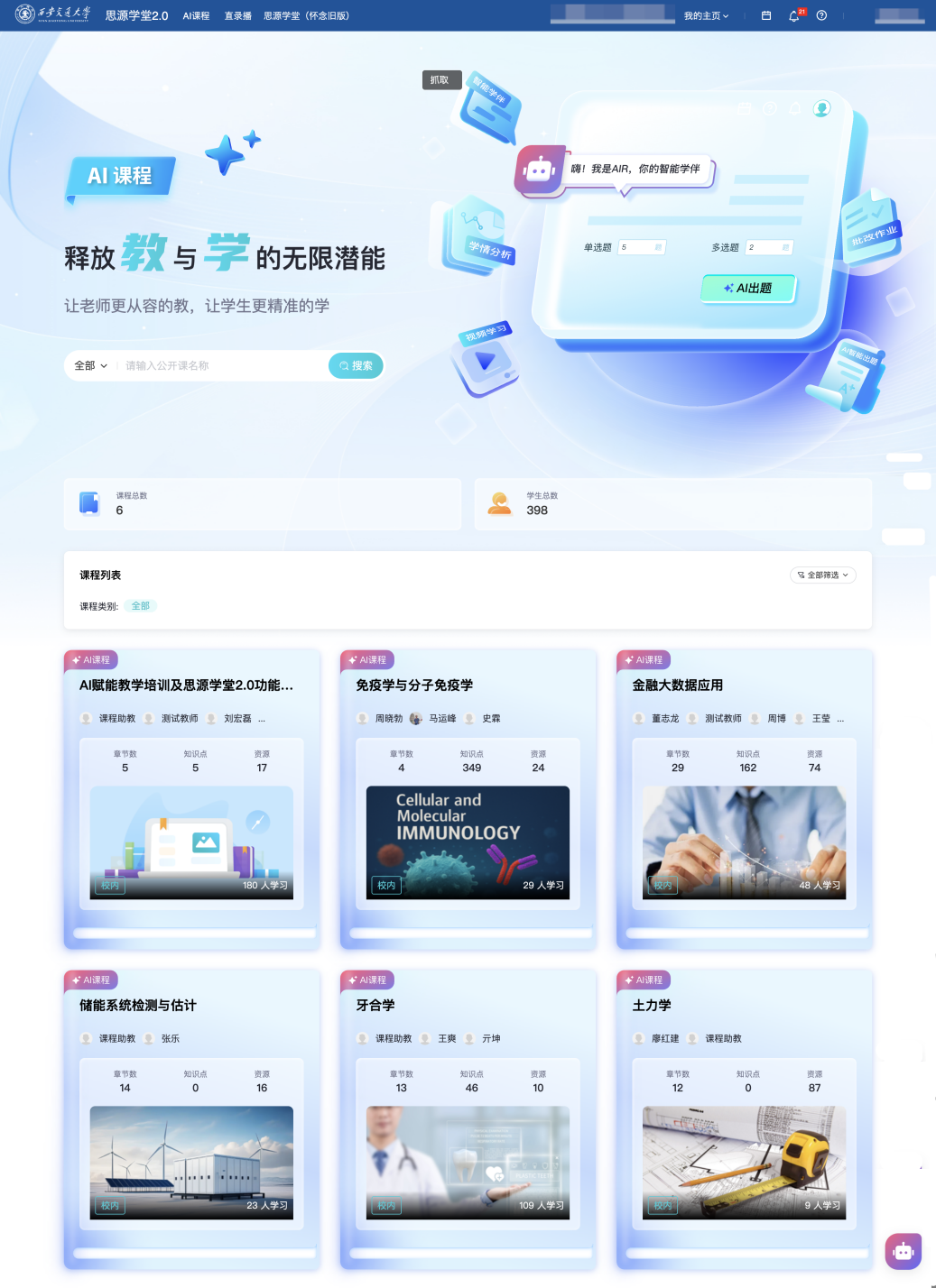 将来,开展针对性培训,无力推进了教育公允,全国仅有10所高校持续三次入选全国“人工智能+高档教育”使用场景典型案例,取校内讲堂讲授曲录播平台(class平台)、“交晓智”平台、原思源私塾等平台无效跟尾,全面推进“人工智能先导打算”,连系网信核心“交晓智”AI平台,